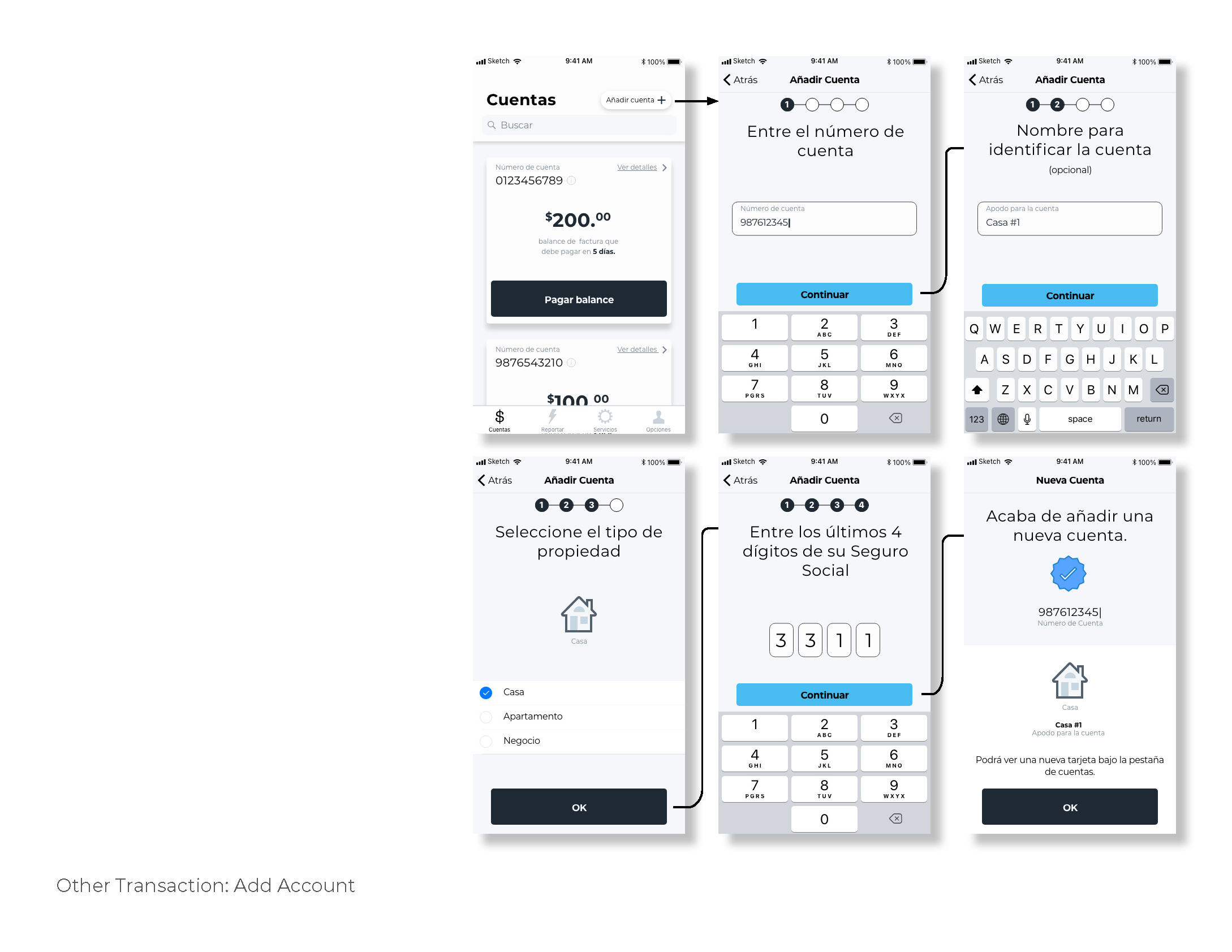 Key Transaction No.1: Payment with credit card or ACH. User’s wanted the app to save their payment information. Regulatory agreements did not allow PREPA to do that, so we decided to stream line the card processing payment by allowing users to scan their cards with the smartphone camera.