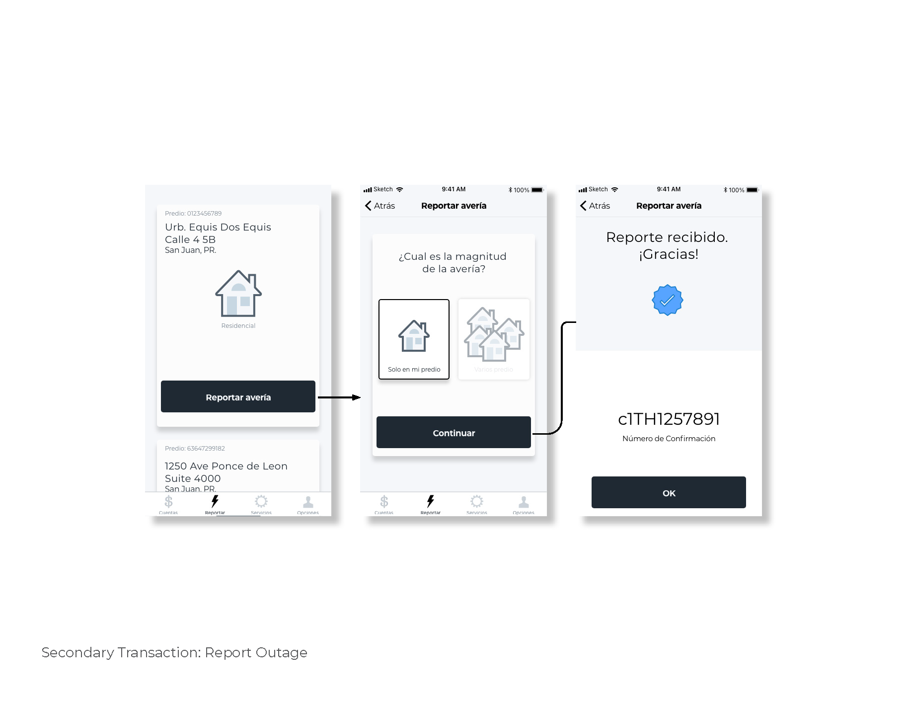 Further research exposed another weakness. PREPA’s web app forms for requesting services where not ergonomic and led to user mistakes when inputting information. I, along with my co-founders, helped PREPA identify the opportunities of using a smartphone’s form components to help minimize those error. We also identified a smartphones’ location technology as method to minimize location input.