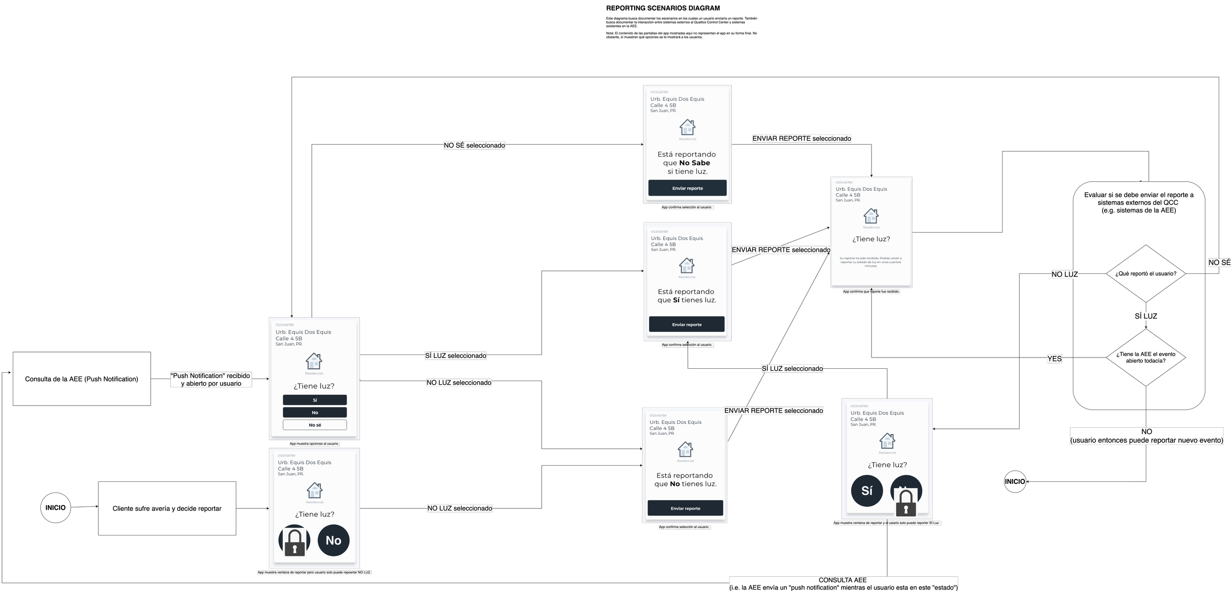 Example diagram of the steps the user needs to take to report a power outage. For each service we had a diagram.