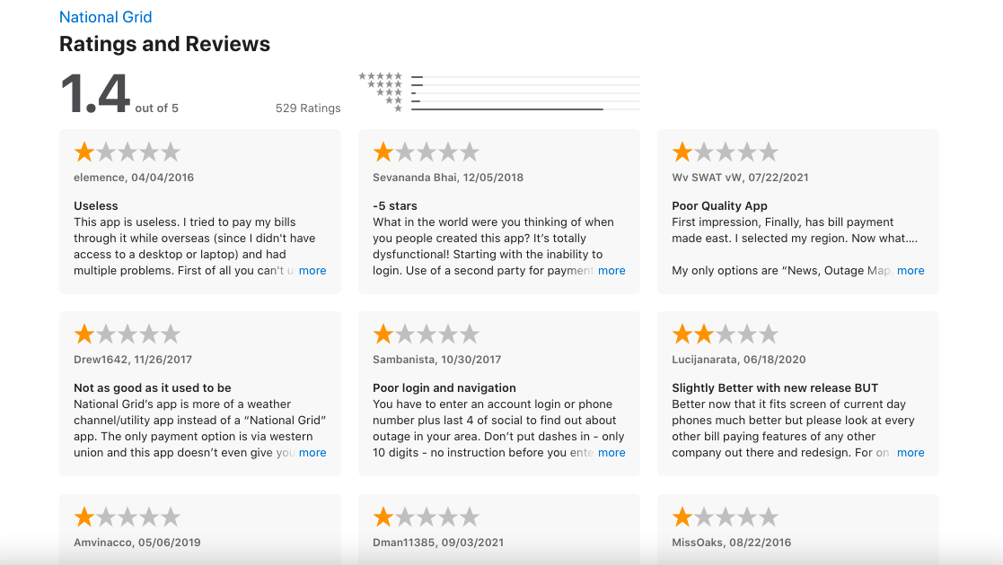 I also discovered that customer’s seemed to review positively ConEdison’s app. I analyzed the app and documented where the app was successful. Although PREPA has a monopoly over it’s services, this type of research helped PREPA and Qualtics understand a user’s expectation for a modern utility app.
